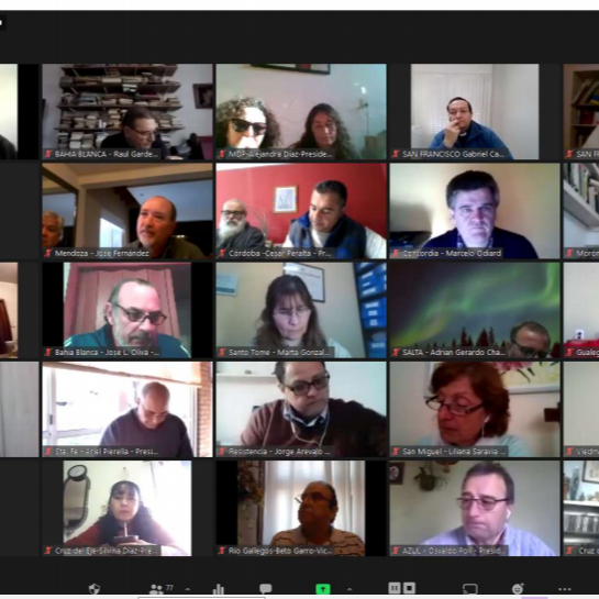 El plenario se llevó a cabo el sábado 24 de abril de 8.00 a 13.00 hs mediante la plataforma zoom, con una excelente cantidad de participantes, entre votantes, asesores e integrantes de la Mesa Directiva Nacional sumaron un total de 87 conectados. Estuvieron presentes también los directores y/o coordinadores de escuela por medio de un grupo cerrado de Facebook, armado especialmente por M.D.N para que puedan presenciar el plenario, esta herramienta tecnológica fue una solución de urgencia, y seguramente se utilizará para trabajar las escuelas a nivel país en este año, ya que la pandemia causada por el Covid-19 y las nuevas cepas que están causando otras olas de contagio, no nos permiten los encuentros presenciales.